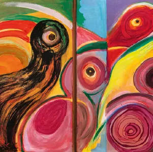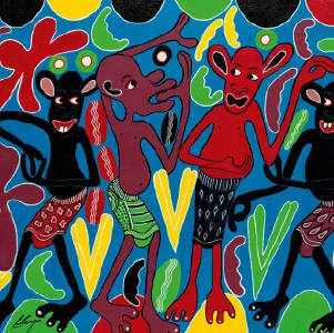 postcoloniale, ses oeuvres, souvent exécutées avec des couleurs vibrantes