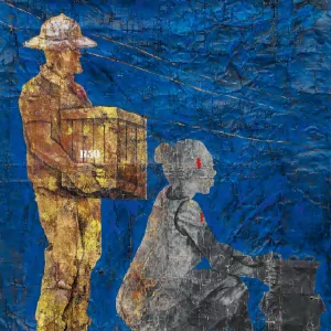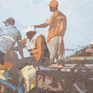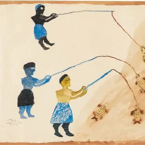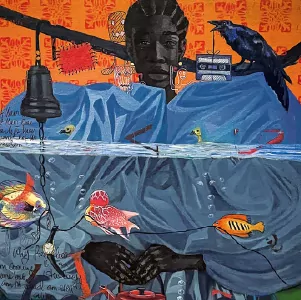 réalise également des oeuvres sur papier. Fils de pêcheur, il dépeint une
