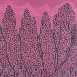 et les pigments naturels sur papier, mais développe une approche inédite